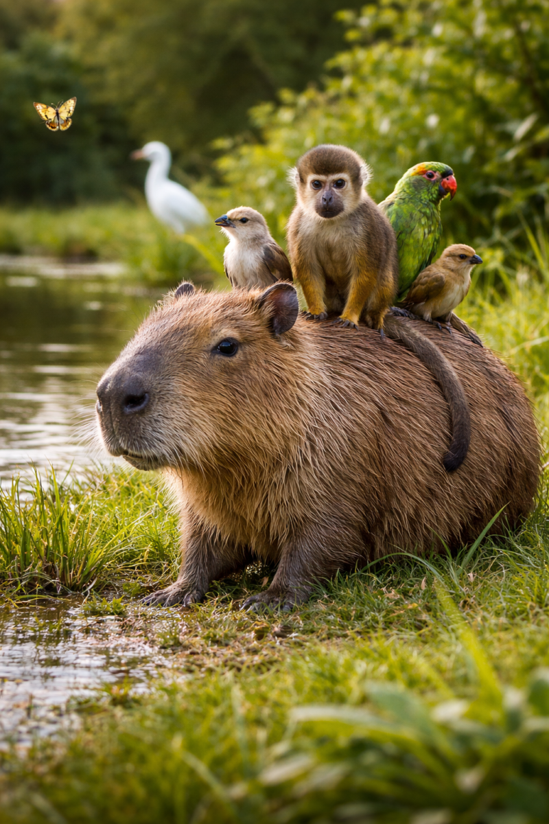 - One of the most fascinating things about capybaras is their peaceful reputation. They are often observed resting or moving alongside a surprising variety of other animals, including birds, monkeys, turtles, and even larger mammals. This relaxed social presence has helped make them especially popular among wildlife enthusiasts, but their appeal goes far beyond internet charm. Their behavior reflects a highly social species that depends on group living, environmental awareness, and access to water for safety and comfort.
