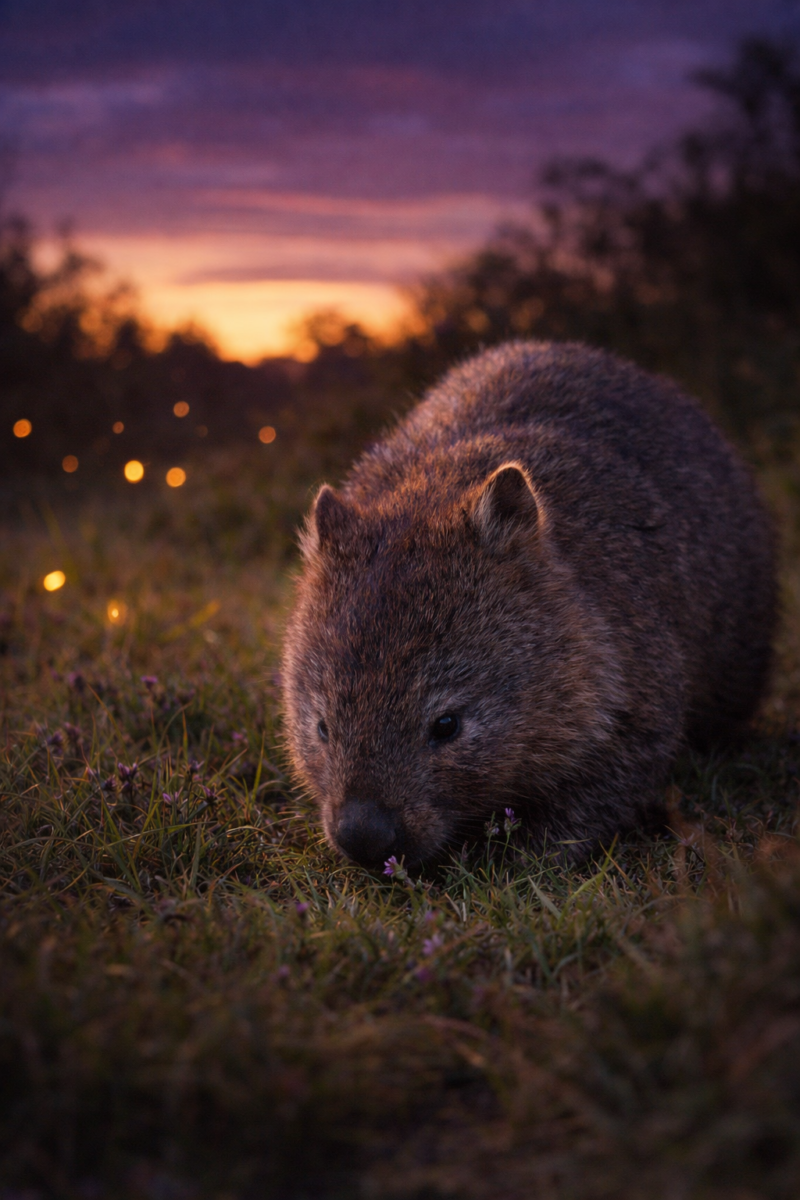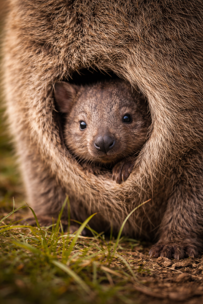 A photo of a wombat digging or emerging from a burrow is ideal because it captures the species’ muscular build and makes its underground lifestyle immediately understandable. A second image of a wombat foraging at twilight would reinforce its mostly nocturnal routine and show it in the quieter, low-light conditions where it is often most active. A third image featuring a wombat joey peeking from the mother’s pouch, or a young wombat near a burrow, adds emotional appeal while also illustrating one of the species’ most important reproductive adaptations.